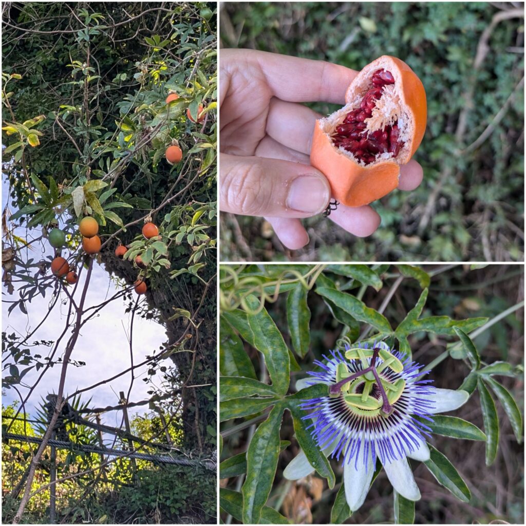 PS und Auflösung: Bei obiger Frucht handelt es sich, wie ich herausfand, um die Frucht der Blauen Passionsblume, also eine Art Passionsfrucht, die auch ähnlich schmeckt, nur etwas bitterer.