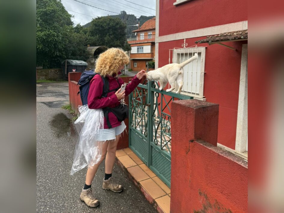 In Redondela gab es für uns dann Pancakes (die hier wie fast alles „Tortillas“ heißen) mit Schokolade und Beeren. Mein inzwischen abgelegtes aber geschätztes „Mülltüten-Cape“ konnte ich dabei gerade noch vor dessen Entsorgung durch den Cafébesitzer retten.