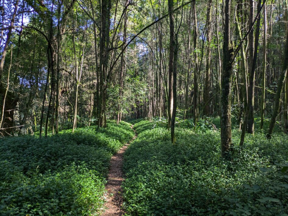 Schließlich galt es, den Abzweig Richtung Kloster Herbón nicht zu verpassen, wo ich heute übernachten wollte. Entlang einer Teerstraße in der Sonne zog sich die Etappe jedoch allmählich und ich begann mich zu fragen, warum ich diesen Umweg überhaupt eingeschlagen hatte. Im weiteren Verlauf wurde der Weg immer schmaler und mündete am Ende in einen Trampelpfad durch Walddickicht, der nicht so aussah, als wäre hier in letzter Zeit mal irgendjemand entlang gelaufen. Ich fragte mich, was ich hier eigentlich machte und bekam mich beschlich die Angst, ob ich denn heute Abend allein mit drei Mönchen am Tisch sitzen würde?