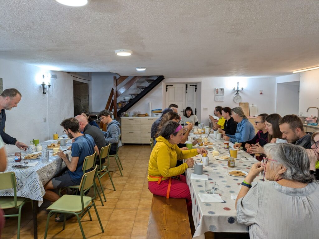 Wie starteten noch im Dunkeln und ließen die aufgehende Sonne in unserem Rücken zügig hinter uns. Wie es sich so ergab, wurde unsere buntgewürfelte, kleine Gruppe, die sich so erst gestern im Kloster gefunden hatte, im Verlauf immer größer, da sich unterwegs noch weitere Bekannte dazugesellten.