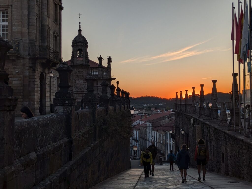 Gestärkt „marschierten“ wir dann gegen 4 in Santiago de Compostela ein und erreichten die Kathedrale mit ihrer beeindruckenden Fassade und den vielen, vielen Pilgern, die schon vor uns angekommen waren. Gratulationen, Fotos, einige Tränen, Wiedersehen mit anderen Camino-Bekanntschaften, erste Verabschiedungen – und dann natürlich die Compostela im Pilgerbüro unter Vorlage des gefüllten Pilgerausweises abholen!