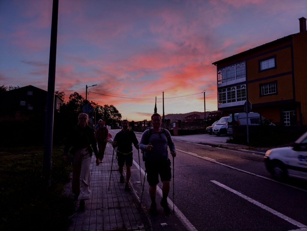 Punkt 6.45 Uhr ging das Licht an und es schallte „Olá, buenos dias!!“ durch den Gang aus aneinandergereihten 2er-Parzellen. Also hieß es, schnell einen Badplatz zu ergattern und dann ab zum Frühstück! Schnell ein paar Tostadas con mermelada auf die Hand und einen Kaffee und dann ging es auch schon los auf die letzten knapp 28 Kilometer bis Santiago.